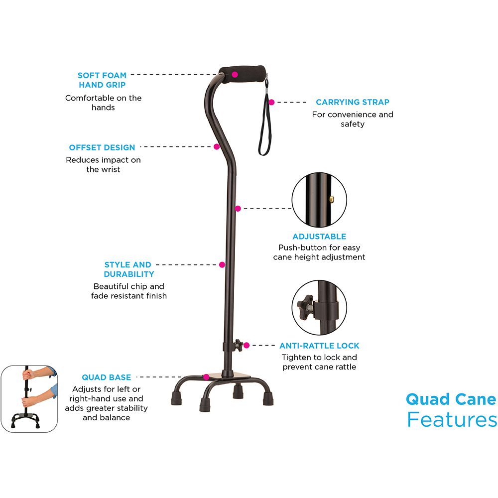 ESSENTIAL MEDICAL LARGE BASE QUAD CANE, BLACK